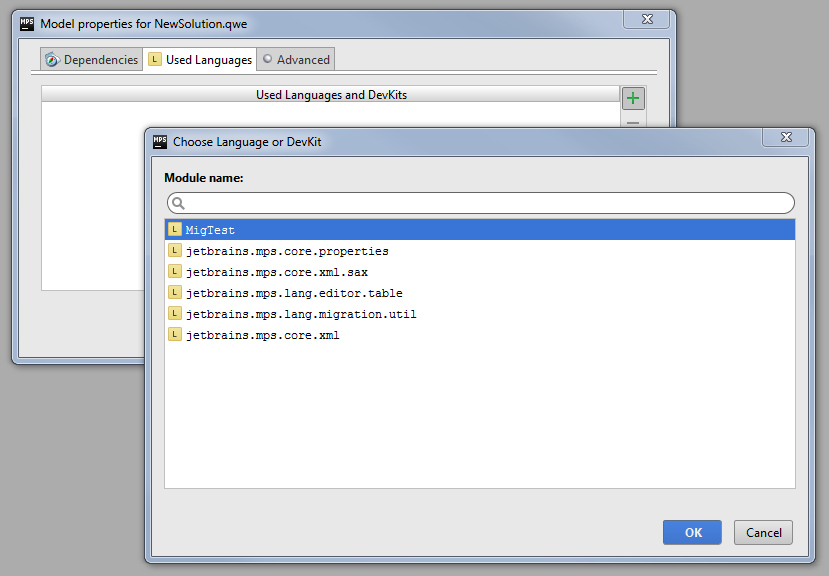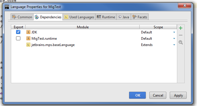 First problem is when my "sandbox" solution imports "MigTest" as "used language" - it does not inherit neither "baseLanguage", nor "JDK" solution.