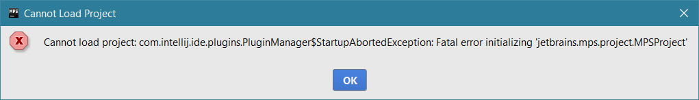 Cannot load project: Fatal error initializing 'jetbrains.mps.project.MPSProject'