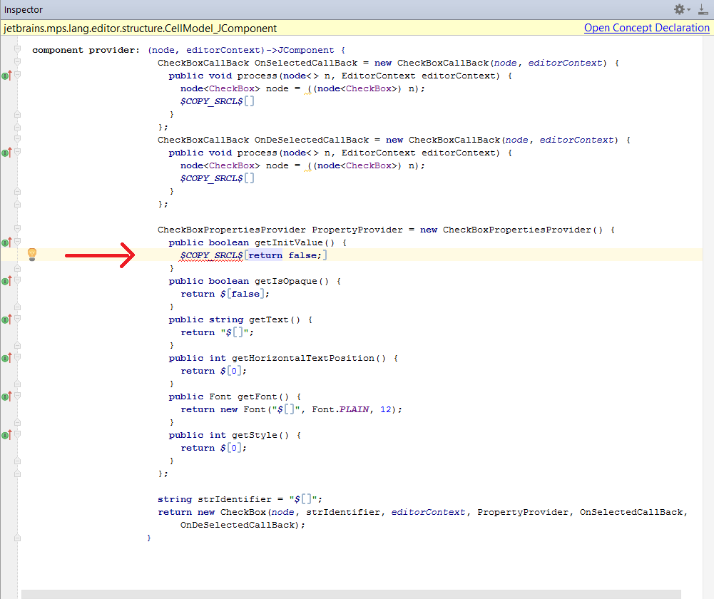 This works fine. However, in the third instance (for the function "getInitValue"), where I use the very same principle as above, I get the error message: "Node under $COPY_SRCL$ macro should have multiple cardinality"