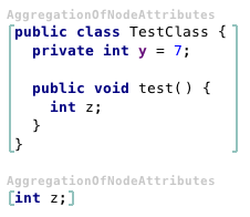 However, the main problem here is that editing breaks when an attribute is printed by nodeToEdit AND hidden within another nodeToEdit. For instance, assume that instead of int z there would be a BlockStatement. Then editing in this block breaks as soon as we start typing. As a consequence, backspacing and selecting (by shift + up/down) is not possible anymore with the following error: