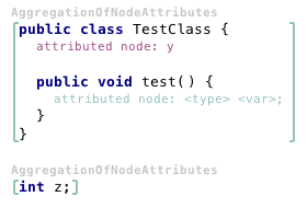 Thus, attributes are ignored within nodeToEdit and thus the content appears twice (i.e., instead of projecting constants for attributed nodes, just the entire AST is projected). However, editing is possible as I wanted and does not break ;)