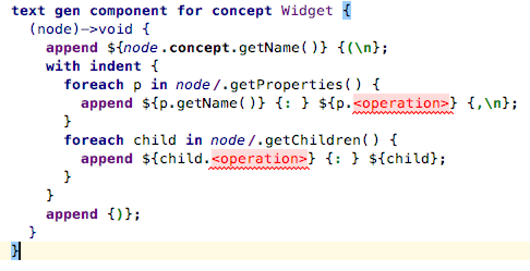 For many of those concepts, in the "textgen" aspect, I want to generate a similar text format. I tried writing a generic textgen aspect for the Widget concept so that it'll apply to all concepts that extend it.